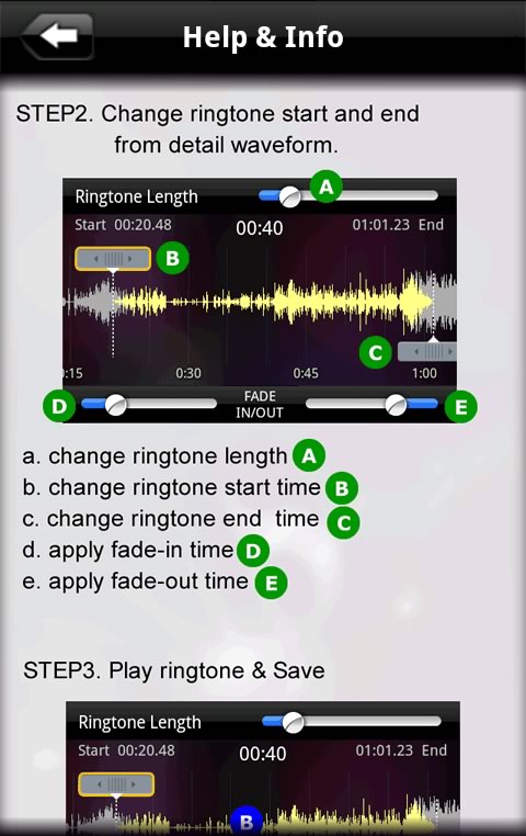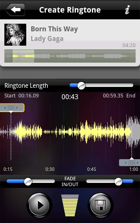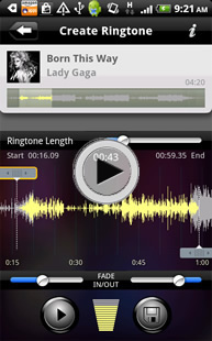 - Phil on 05/29/11What a fantastic app which really serves as 2 apps. You can edit your ringtone and also allow it to fade in.