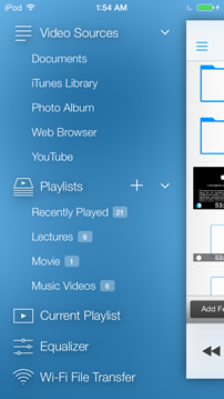 • Play video from Documents, Photo Album, iTunes Library, YouTube and web