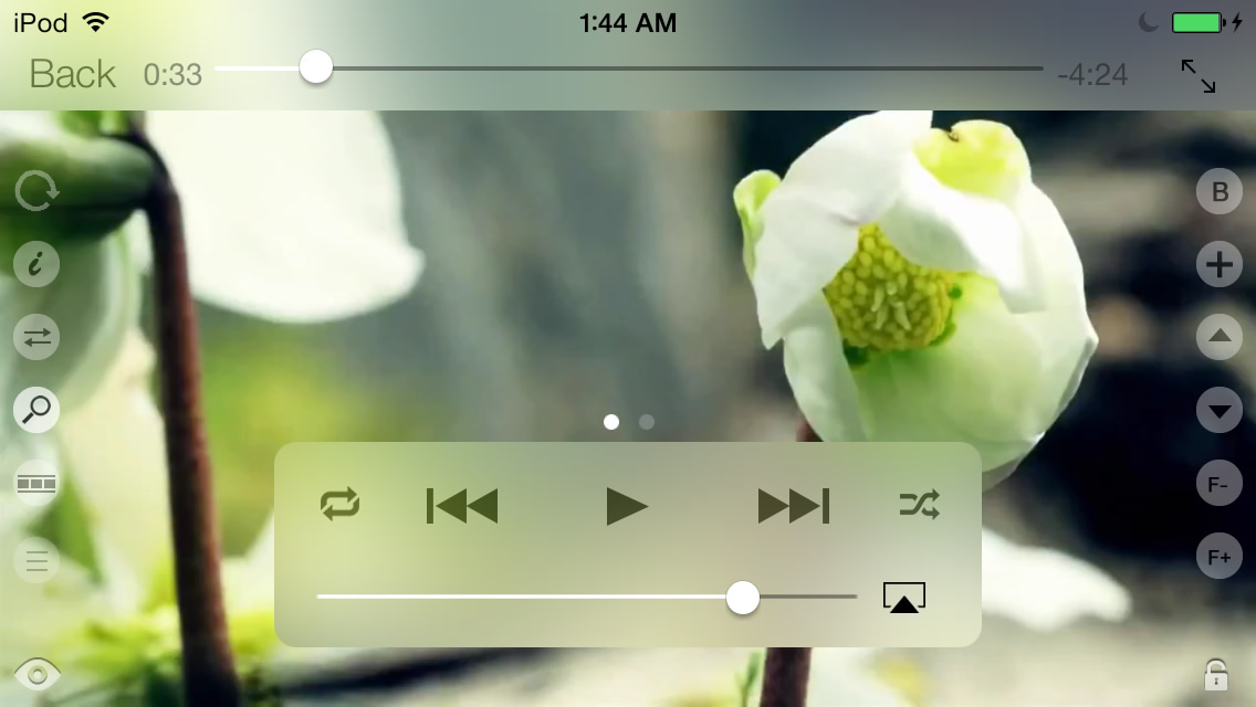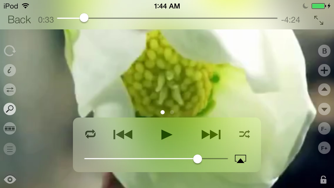 • Playback speed, A-B repeat, Bookmarks, Pinch Zoom, Mirror mode(flip horizontally)