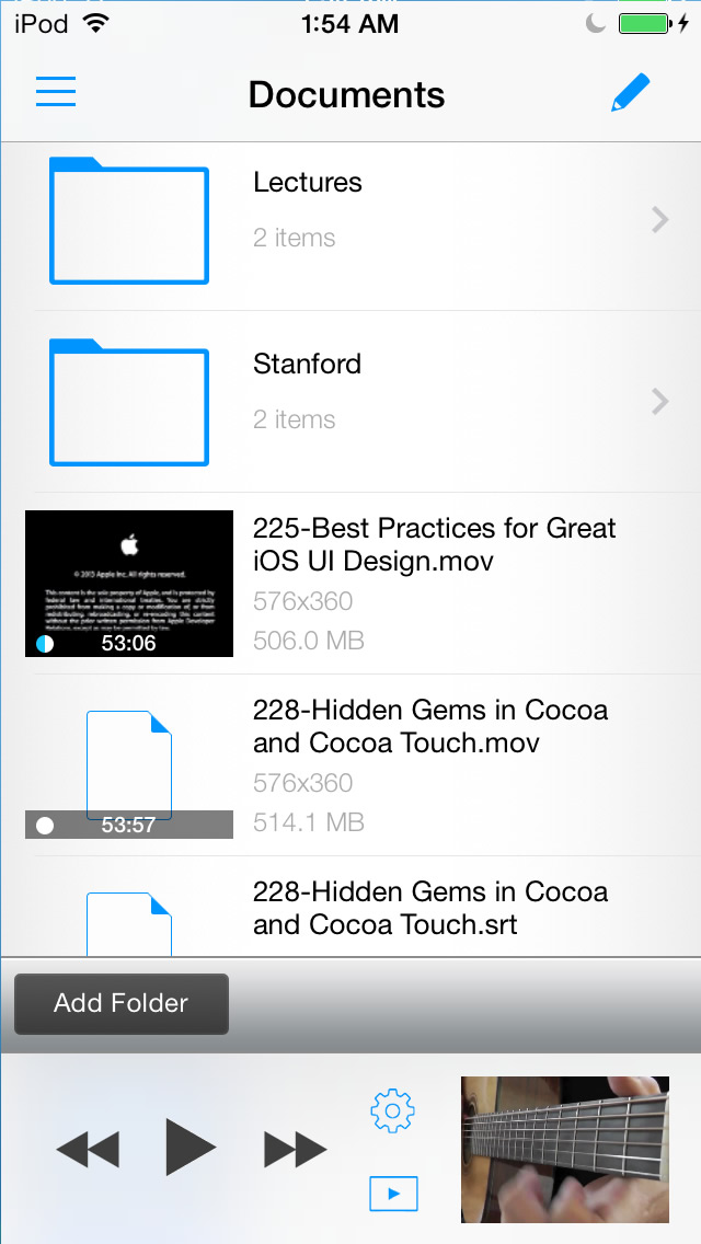Best app I've ever used Excellent video player that I use on average 4 hours a day. The multitouch gestures are excellent(though some like the three fingered tap are a little easily misinterpreted). Actually for the most part better than vlc player on my pc, which is really saying something. Great for watching school lectures without getting distracted by other things on the computer. This app is really making my time in medical school much more productive. Only gripe is that I wish you could increase the speed up to 3x, as some lecturers really are just that slow. Thanks again for making such an amazing app. I'd recommend it to anyone.
